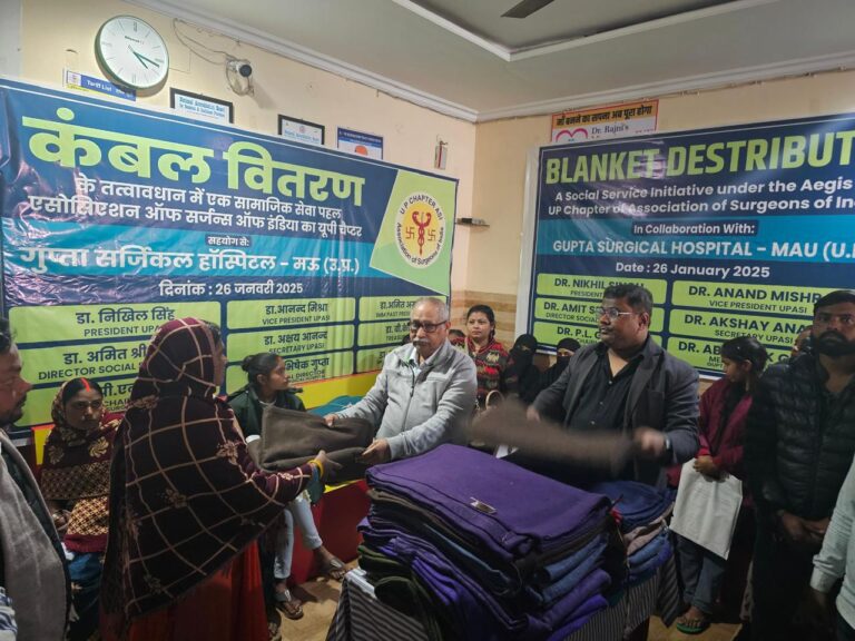 मऊ। गुप्ता सर्जिकल अस्पताल ने यूपी चैप्टर एसोसिएशन ऑफ सर्जन्स के सहयोग से जरूरतमंद 100 लोगों के बीच कंबल वितरित...