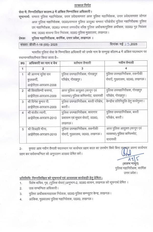 लखनऊ। यूपी में बृहस्पतिवार को पांच आईपीएस अफसरों के तबादले कर दिए गए हैं। आईपीएस दिनेश कुमार पी को केंद्रीय...