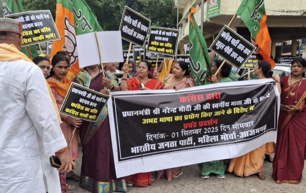 आजमगढ़ : भाजपा महिला मोर्चा ने कांग्रेस कार्यालय के सामने किया जोरदार प्रदर्शन