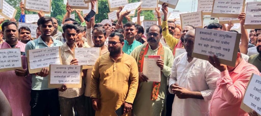 आजमगढ़। जिले में भारतीय जनता पार्टी (भाजपा) के जिला मंत्री महेंद्र मौर्य पर हुए हमले और पुलिस की कथित लापरवाही के खिलाफ बुधवार को डीएम कार्यालय के बाहर भाजपा कार्यकतार्ओं और समर्थकों का गुस्सा फूट पड़ा। प्रदर्शनकारियों ने पुलिस प्रशासन की कार्यशैली पर सवाल उठाए और जिला प्रशासन से न्याय की गुहार लगाई।