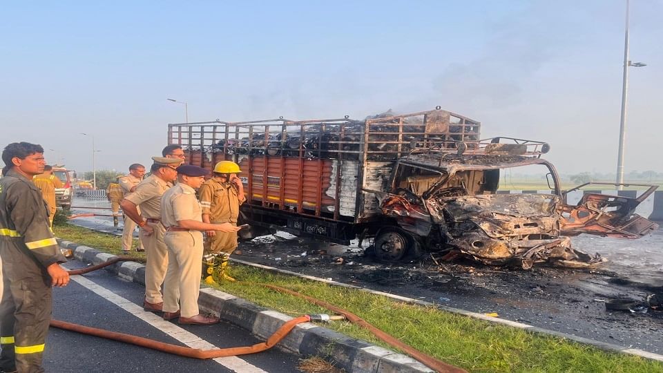 कैंटर-कार की आमने-सामने भिड़ंत, दोनों वाहनों में लगी आग, पांच जिंदा जले, एक घायल