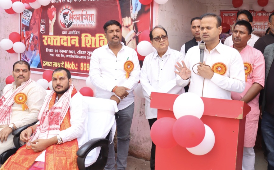 आजमगढ़। आज मण्डलीय जिला चिकित्सालय आजमगढ़ मे स्वास्थ्य विभाग एवं अपराजिता संस्थान के संयुक्त तत्वाधान मे आयोजित रक्तदान शिविर का जिलाधिकारी रविन्द्र कुमार ने फीता काटकर शुभारम्भ किया। जिलाधिकारी ने आम जन से अपील है कि अधिक से अधिक संख्या मे इस शिविर मे आकर रक्तदान करें, रक्तदान करने से किसी जरूरतमंद व्यक्ति का जीवन बचाया जा सकता है। उन्होंने कहा कि रक्तदान करने से 48 घंटे के अंदर ब्लड की रिकवरी शरीर में हो जाती है। उन्होंने कहा कि रक्तदान करने से स्वस्थ व्यक्ति के स्वास्थ्य को बहुत ही लाभ मिलता है, इसलिए अधिक से अधिक लोग किसी अन्य व्यक्ति का जीवन बचाने के लिए रक्तदान अवश्य करें।
