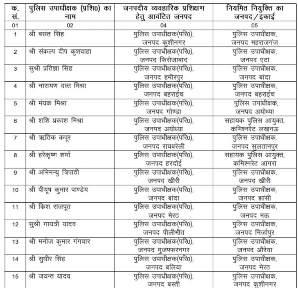 लखनऊ। यूपी में प्रशिक्षण पूर्ण होने के बाद 34 उपाधीक्षकों को नियुक्ति दी गई है। इस संबंध मं शासनादेश जारी कर दिया गया है। नियुक्ति पाने वाले उपाधीक्षकों में बसंत सिंह, संकल्प दीप कुशवाहा, प्रतिज्ञा सिंह, नारायण दत्त मिश्रा, मयंक मिश्रा, शशि प्रकाश मिश्रा, ऋतिक कपूर, हरेकृष्ण शर्मा, अभिमन्यु त्रिपाठी, पीयूष कुमार पांडेय, क्रिश राजपूत, गायत्री यादव को तैनाती दी गई है। इसी तरह, मनोज कुमार गंगवार, सुधीर सिंह, जयंत यादव, रोहिनी यादव, प्रभा पटेल, आकृति पटेल, अभय कुमार वर्मा, अभिषेक कुमार, अनुभव राजर्षि, आकांक्षा गौतम, शुभम वर्मा, अमित कुमार, देशराज सिंह, दीपशिखा, कुलदीप सिंह यादव, अरुण पाराशर, अवनीश कुमार सिंह, शशांक श्रीवास्तव, गौरव उपाध्याय, अपूर्वा पांडेय, अपूर्व पांडेय और विनी सिंह हैं।