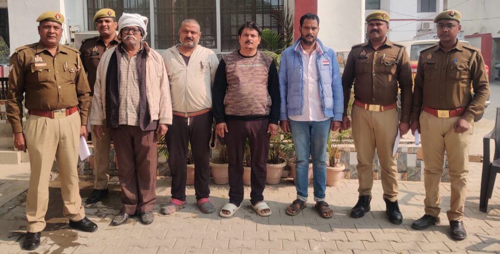 आजमगढ़। कोतवाली पुलिस ने भूमि विवाद के चलते हुई रजनीश पांडेय (45) की हत्या का 4 दिन के अंदर सफल खुलासा करते हुए मुख्य आरोपी नगीना उर्फ रामनगीना सिंह (59) और उसके तीन बेटों इन्द्रसेन उर्फ संतोष (41), भीमसेन उर्फ गुलगुल (38) तथा उग्रसेन उर्फ लाडो (32) को गिरफ्तार कर लिया। आरोपियों के कब्जे से हत्या में इस्तेमाल 315 बोर का अवैध तमंचा, एक खोखा कारतूस और एक जिंदा कारतूस भी बरामद हुआ है। पुलिस के अनुसार 6 दिसंबर को शाम करीब 6:30 बजे रजनीश पांडेय अपनी पत्नी के पास आजमगढ़ शहर लौट रहे थे। सिकरौड़ा पुलिया पर पहले से घात लगाए बैठे चारों आरोपियों ने उन्हें रोका। तीनों बेटों ने ललकारा और पिता नगीना सिंह ने तमंचे से सीधे सीने पर गोली मार दी। गोली लगते ही रजनीश मौके पर गिर पड़े और अस्पताल ले जाते समय उनकी मौत हो गई। हमलावर खेतों के रास्ते फरार हो गए थे। मृतक रजनीश पांडेय का नगीना सिंह परिवार और एक अन्य व्यक्ति आजम पुत्र अलीम के साथ करीब 3 बीघा जमीन को लेकर पिछले 20 वर्षों से मुकदमेबाजी चल रही थी। आरोपी बार-बार जान से मारने की धमकी दे चुके थे। पूछताछ में चारों आरोपियों ने कबूल किया कि रजनीश द्वारा लगातार नए मुकदमे करने और धमकियां देने से तंग आकर उन्होंने सामूहिक रूप से उसकी हत्या की योजना बनाई और उसे अंजाम दिया। पुलिस ने एसएसपी डॉ. अनिल कुमार के निर्देशन में प्रभारी निरीक्षक यादवेंद्र पांडेय के नेतृत्व में टीम गठित की थी। आज आधी रात को शिवालिक मेडिकल कॉलेज के पास दबिश देकर सभी आरोपियों को दबोच लिया गया।