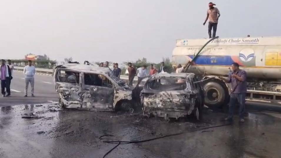 दर्दनाक हादसा: दो कारों की टक्कर के बाद लगी आग, पांच की मौके पर ही मौत
