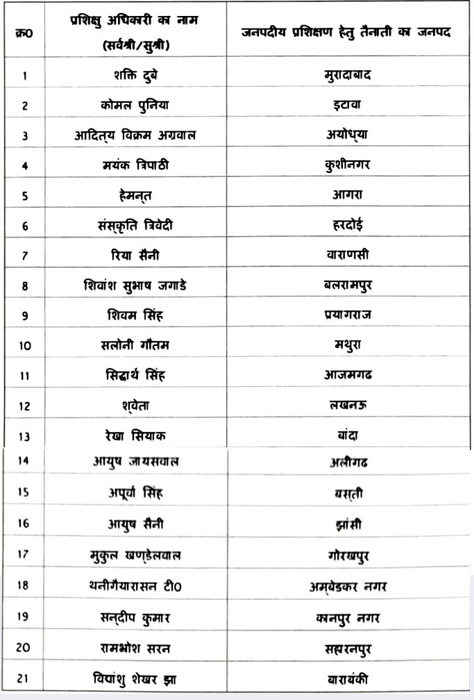 प्रदेश में 21 प्रशिक्षु आईएएस अधिकारियों का हुआ तबादला, फील्ड में उतरेंगे 2025 बैच के अफसर