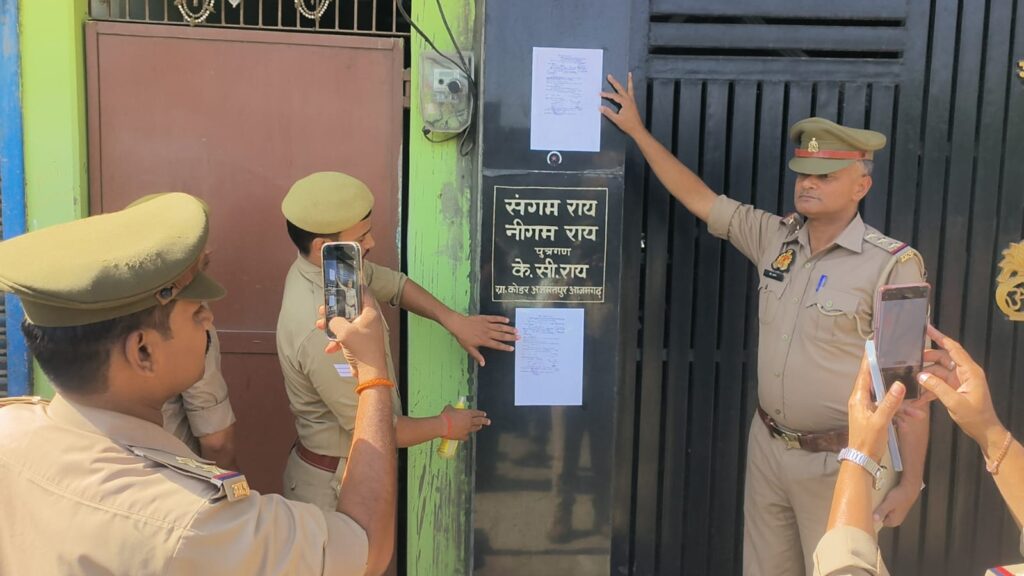 आजमगढ़ न्यायालय के आदेश पर फरार अभियुक्तों के खिलाफ पुलिस ने की मुनादी की कार्रवाई