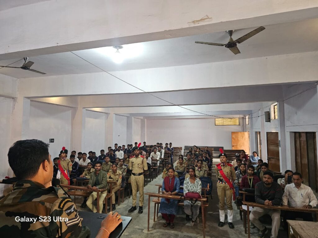संविधान दिवस की संगोष्ठी के उपरान्त संयुंक्त निदेशक सेवायोजन श्री राममूर्ति, सहायक सेवायोजन अधिकारी श्री अवधेश कुमार तथा कानपुर एयरफोर्स स्टेशन के 3 एयर विंग से आये कॉर्पोरल ऋषव सिंह ने एन सी सी,एन एस एस तथा रोवर्स/रेंजर्स के कैडेट्स के मध्य कैरियर कॉउंसलिंग करते हुए अग्निवीर, एस एस बी,सेना भर्ती,कौशल उद्योग तथा अन्य माध्यमों से कैरियर डेवेलपमेंट के लिए उन्हें प्रोत्साहित किया।इस दौरान बच्चों से सामान्य अभिज्ञान के प्रश्न पूछे गए और उत्तर देने वाले छात्रों को पुरस्कृत भी किया गया।दोनों कार्यक्रमों का संचालन महाविद्यालय के सहयुक्त एन सी सी अधिकारी ले0 डॉ0 पंकज सिंह ने किया।इस अवसर पर महाविद्यालय के अन्य छात्र छात्रायें,प्रोफेसर्स और शिक्षणेत्तर कर्मचारी भी उपस्थित रहे।