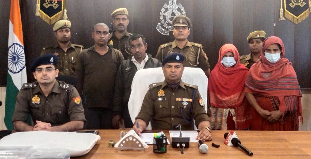 आजमगढ़। रानी की सराय थाना क्षेत्र के चक सेठवल गांव में हुई मणिलाल की हत्या के मामले का शुक्रवार को पुलिस ने खुलासा किया। इस मामले में पुलिस ने मृतक की पत्नी, उसके बेटे, बहू और साले को गिरफ्तार किया है। पुलिस ने बताया कि पुश्तैनी जमीन को बचाने के लिए इन लोगों द्वारा यह हत्या की गई थी। अपर पुलिस अधीक्षक नगर शैलेंद्र लाल ने बताया कि 26 नवम्बर को रानी की सराय थाना में चंद्रकला देवी पत्नी मणिलाल यादव निवासी चकसेठवल ने प्रार्थना पत्र देकर बताया कि उसके पति नशे के आदि थे और पुश्तैनी जमीन को बेंचते थे। इससे परिवार व जमीन खरीदारों से रंजिश चल रही थी। इसी बात को लेकर किसी अज्ञात व्यक्ति द्वारा उसके पति की हत्या कर दी गई। पुलिस ने मामले में मुकदमा दर्ज कर कार्रवाई शुरू कर दी। पुलिस की विवेचना में सुभाष यादव पुत्र लालचन्द यादव निवासी काजीभीटी, रवि यादव पुत्र स्व. मणिलाल यादव निवासी चक सेठवल, चन्दना यादव पत्नी रवि यादव निवासी चक सेठ सेठवल, चन्द्रकला देवी पत्नी स्व. मणिलाल यादव निवासी चक सेठवल का नाम प्रकाश में आया। शुक्रवार की दोपहर थानाध्यक्ष रानी की सराय सुनील कुमार सिंह द्वारा चारो अभियुक्तों को चकसेठवल से गिरफ्तार कर लिया। पूछताछ में अभियुक्तों ने बताया कि मृतक मणिलाल अपनी पैतृक सम्पत्ति को बेंचकर शराब पीता और पिलाता था। वह जमीन बिक्री का सारा पैसा अपने ऊपर खर्च करता था। इसे लेकर अक्सर उसका हम लोगों में विवाद होता था। शेष जमीन को बचाने की नियत से मृतक की पत्नी चंद्रकला शेष जमीन को अपने नाम से बैनामा कराना चाहती थी। जिसका मृतक मणिलाल द्वारा विरोध किया गया तथा रजिस्ट्री करने के लिए सहमत न होने पर 25 नवंबर को मृतक की पत्नी चंद्रकला, बेटा रवि यादव, बहू चंदना यादव तथा साला सुभाष यादव के द्वारा उसकी हत्या करने का निर्णय लिया गया। 25 नवम्बर की रात लगभग 2.30 बजे अपने नए घर से जहां पर मृतक सोता था, वह लोग वहां पहुंचे। साले सुभाष के द्वारा पहले ऊपर चढ़ कर उसका मुंह दबाया गया। बहू चंदना व पत्नी चंद्रकला द्वारा एक-एक पैर को पकड़ा गया। पुत्र रवि ने उसके दोनों पैरों को पकड़ा। मणिलाल के बेहोश हो जाने पर साले द्वारा घर में प्रयुक्त होने वाले चाकू से उसकी गर्दन को काट दिया गया।