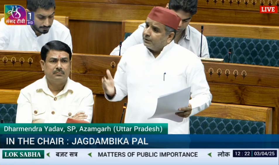 आजमगढ़। समाजवादी पार्टी के सांसद धर्मेंद्र यादव ने संसद में उत्तर प्रदेश की भाजपा सरकार पर जमकर हमला बोला। उन्होंने आजमगढ़ के तरवां थाना क्षेत्र में दलित युवक शनि कुमार की हिरासत में संदिग्ध मौत और सपा के दलित सांसद रामजी लाल सुमन के घर पर हुए हमले के मुद्दे को उठाते हुए सरकार को कठघरे में खड़ा किया। सांसद ने शनि कुमार के परिवार के लिए एक सदस्य को सरकारी नौकरी और एक करोड़ रुपये मुआवजे की मांग की।