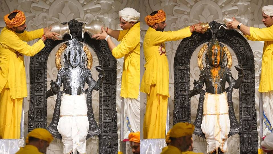 इस मौके का साक्षी बनने के लिए देश ही नहीं विदेशों से भी श्रद्धालु रामनगरी पहुंचे। आने वाले भक्तों पर ड्रोन से सरयू के पवित्र जल की फुहारों से बारिश की गई। गली गली में भक्तों की कतारें दिखीं। इस दौरान पूरी नगरी श्रीराम के जयकारों से गुंजायमान रही।