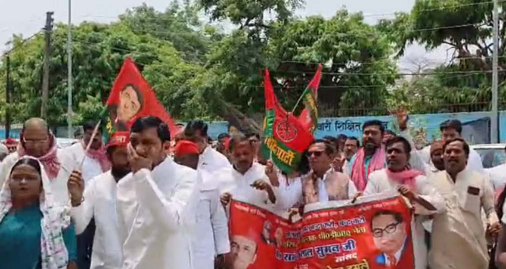 उन्हें नंगा करके चौराहों पर घसीटा जा रहा है और बेरहमी से पीटा जा रहा है। सपा नेताओं ने दावा किया कि सरकार के संरक्षण में एक विशेष जाति के लोग आपराधिक गतिविधियों को अंजाम दे रहे हैं, जिससे प्रदेश में अपराध की घटनाएं बढ़ी हैं। ज्ञापन में मांग की गई कि मुख्यमंत्री को निर्देश दिए जाएं कि ऐसी घटनाओं में शामिल लोगों के खिलाफ कठोर कानूनी कार्रवाई की जाए। ज्ञापन सौंपने के दौरान सपा के जिला अध्यक्ष हवलदार यादव, पूर्व सांसद नंदकिशोर यादव, सांसद दरोगा प्रसाद सरोज, पूर्व एमएलसी कमला प्रसाद यादव, विधायक बेचई सरोज, जिला पंचायत अध्यक्ष विजय यादव, पूर्व एमएलसी राकेश कुमार यादव गुड्डू, करुणाकांत मौर्य, रामप्यारे यादव, संतोष कुमार गौतम, कमलेश यादव गायक व इंजीनियर लालचंद यादव सहित आदि लोग उपस्थित थे।
