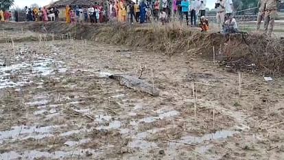 आठ फीट लंबा मगरमच्छ दिखा, वन विभाग टीम की मशक्कत के बाद भी पकड़ से दूर, ग्रामीणों में दहशत