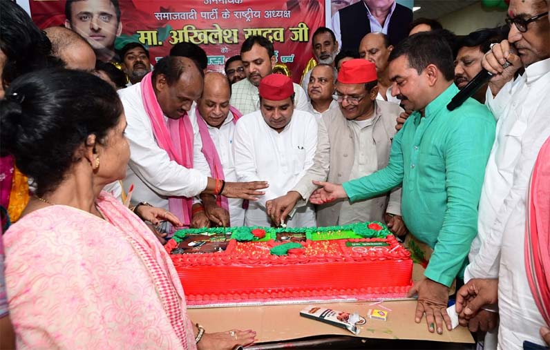 आजमगढ़ : अखिलेश यादव के जन्मदिन पर सपाईयों ने काटा 52 किलो का केक, मरीजों में बांटे फल, किया रक्तदान
