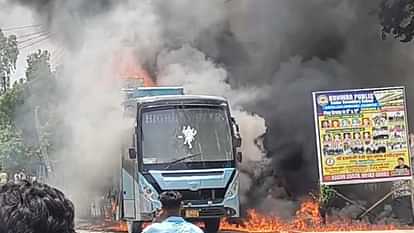 वाराणसी जा रही बस बनी आग का गोला, धू- धू कर जली; यात्रियों ने कूद कर बचाई जान