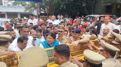 पुलिस का घेरा तोड़कर बुधवार दोपहर करीब 12 बजे सांसद सुमन ने आवास से निकलने की कोशिश की। लेकिन, पुलिस ने बैरियर लगा दिए। रास्ते बंद कर दिए। इस दौरान सपा कार्यकर्ताओं और पुलिस के बीच कहासुनी और हंगामा हुआ। सुमन ने पुलिस को चेतावनी देते हुए कहा कि सात दिन में प्रतिमा तोड़ने वाले जेल नहीं भेजे गए तो उन्हें आंदोलन के लिए बाध्य होना पड़ेगा। सुमन ने कहा कि अखिलेश के जन्मदिन पर उनका पोस्टर फाड़ा गया। पुलिस मूक-बधिर बनी रही।