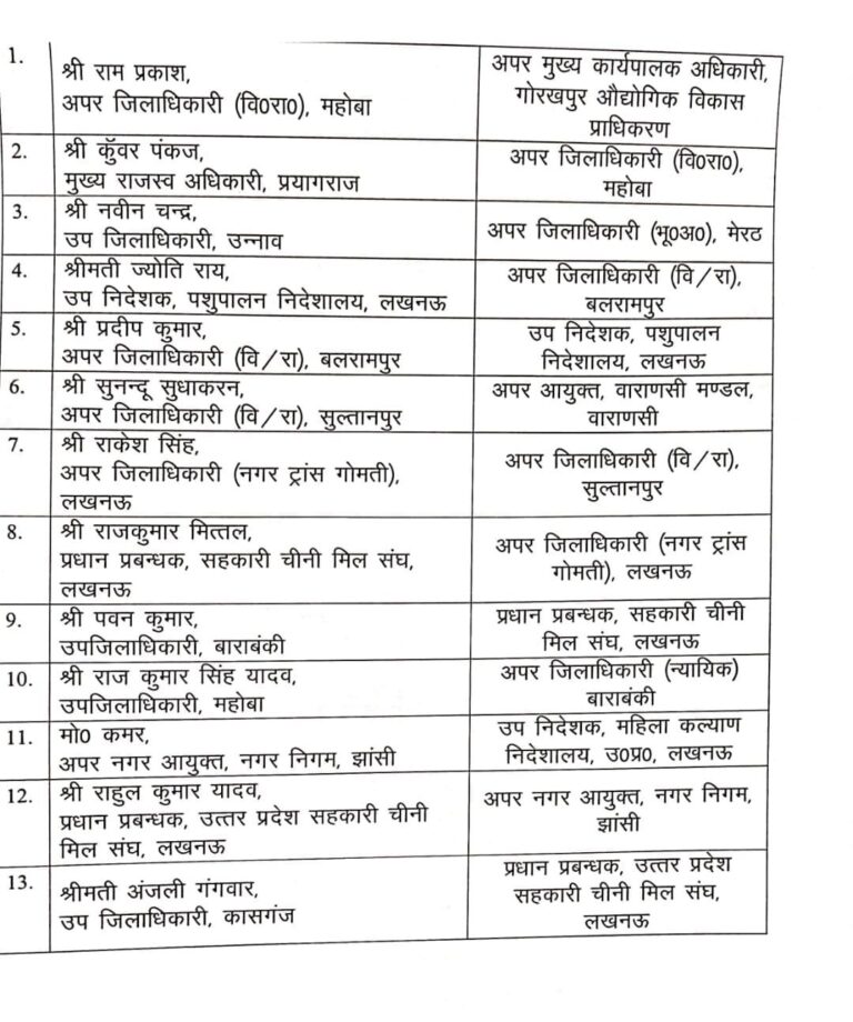 लखनऊ। प्रदेश में 13 पीसीएस अधिकारियों का तबादला कर दिया गया है। सहकारी चीनी मिल संघ के प्रधान प्रबंधक राजकुमार...